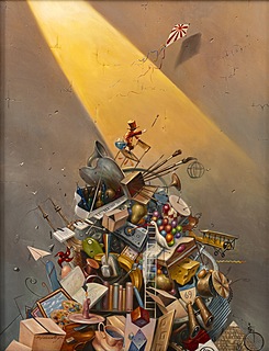 sygnowany na odwrocie: 'Dariusz Ślusarski | OLEJ 100 x 70 cm 2009 | "Kto ku wielkiemu zmierza na małe się nie ogląda"'