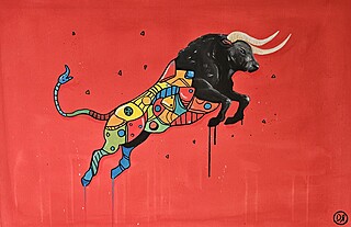 technika mieszana (akryl, szlagmetal), płótno, 50 x 70 cm