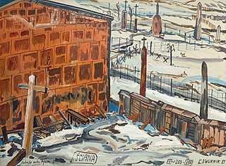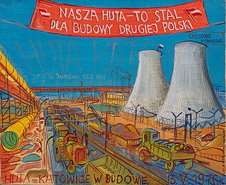 opisany i datowany u dołu: „HUTA KATOWICE W BUDOWIE 13.V.1976 r”; oraz na odwrocie: „E. DWURNIK |1976 V”