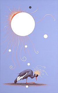 Opisany na odwrocie: "EDWARD NARKIEWICZ | SAMOTNY ŻURAW, 2003 | (83 x 53,5) CM. | (OLEJ+ACRYLIC+PILŚŃ"