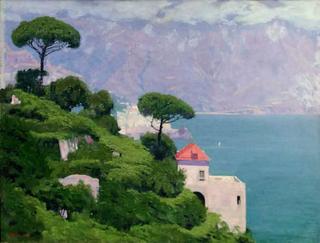 Na blejtramie napis atramentem albo tuszem: ogrodowa brama (Amalfi)