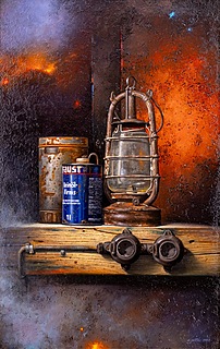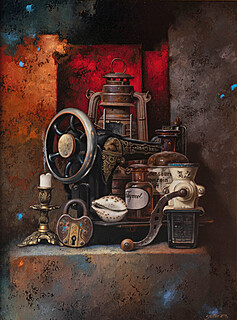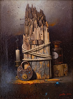 sygn., opis. i dat. na odwrociu: Edward Szutter | MN.LXIV z cyklu: Pod pozorem codzienności | 65 x 50 cm OLEJ. 2008 r.