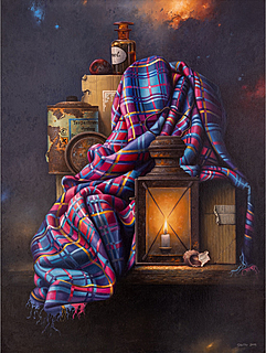 sygnowany p.d.: 'Szutter 2018.' oraz opisany na odwrocie: 'EDWARD SZUTTER | MN. CLVI, z cyklu "Pod pozorem codzienności" | 65x50 cm. Olej. 2018'