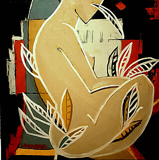 olej, płótno, 70 x 70 cm, sygn. p.d.: E.BOUKOURBANE