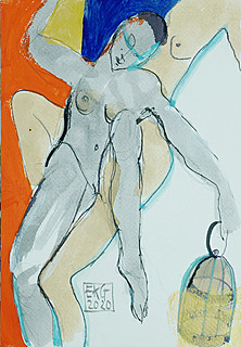 akwarela, tusz lawowany, papier, 32 x 28 cm,