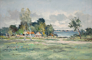 na odwrocie nalepka z opisem: ART. MALARZ DZIERZENCKI EUGENIUSZ/ CZŁONEK ZWYCZAJNY ZPAP/ LEGITYMACJA NR 107/81–833 SOPOT ABRAHAMA 32/POLSKA – POLAND