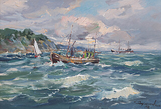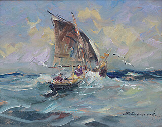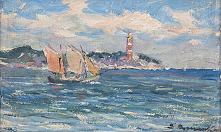 olej, tektura, 24 × 32 cm w świetle passe-partout