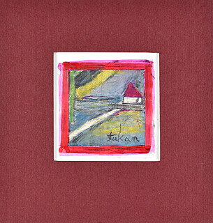 technika mieszana: gwasz, akryl, pastele olejne, papier; 8,7 x 8,7 cm (w św. passe-partout);
