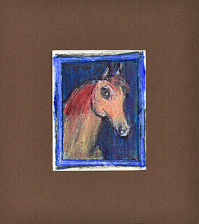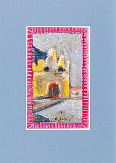 technika mieszana: akryl, akwarela, olejna kredka, papier; 8,2 x 6,7 cm (w św. passe-partout);
