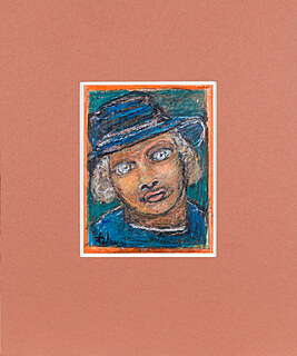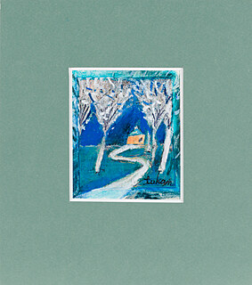technika mieszana: akryl, pastele olejne, papier; 9,2 x 7,6 cm (w św. passe-partout);