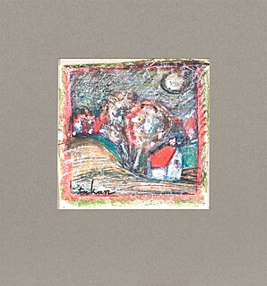 technika mieszana: akryl, akwarela, olejna kredka, papier; 8,2 x 6,7 cm (w św. passe-partout);