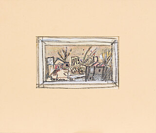 technika mieszana, papier; 13,8 x 10,4 cm (w św. passe-partout);