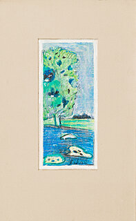 technika mieszana, papier; 13,6 x 9,4 cm (w św. passe-partout);