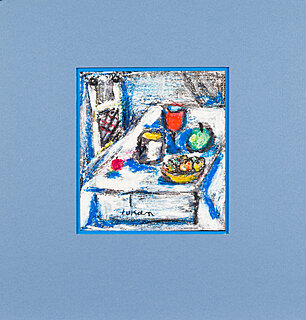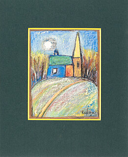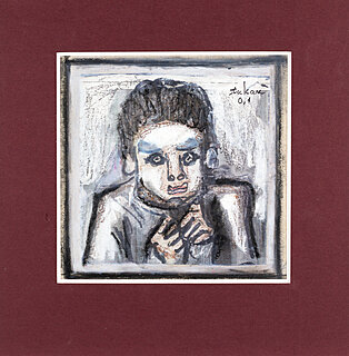 technika mieszana: akryl, pastel olejny, papier; 15,5 x 14 cm (w św. passe-partout);