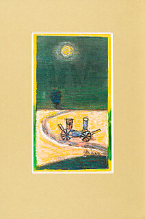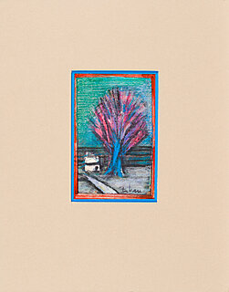 technika mieszana, papier; 14,8 x 9,1 cm (w św. passe-partout);
