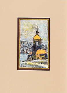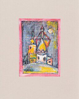 technika mieszana, papier; 13,8 x 10,4 cm (w św. passe-partout);