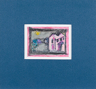 technika mieszana: akryl, akwarela, olejna kredka, papier; 12,5 x 8,8 cm (w św. passe-partout);