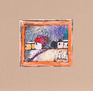technika mieszana, papier; 7,3 x 8,3 cm (w św. passe-partout);