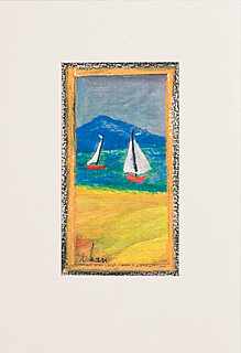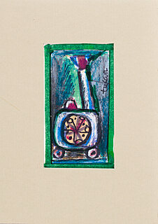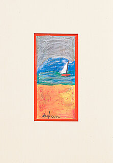 technika mieszana, papier; 11,8 x 7,4 cm (w św. passe-partout);
