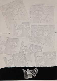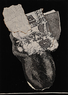 papier, collage; wym. prac 19 x 12,3 cm; wym. wraz z kartą na, którą są naklejone 22,5 x 32,4 cm;