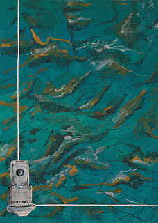 technika mieszana: piórko, tusz, gwasz, kolaż, papier, 30 x 21 cm,