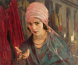 opis. i sygn. l. d.: "u znawcy pereł" / F.M. Wygrzywalski.