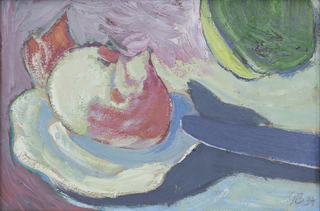 na odwrocie opis autorski: BEDNARSKI / MARTWA NATURA / Z CEBULĄ / OL / 1994 / 21 X 30,5.