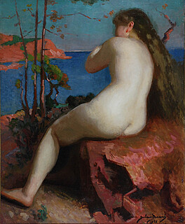 na odwrocie napisy autorskie: "Nu aux Roches Rouge" / ...rayas / 1928 / Gustave Durand.