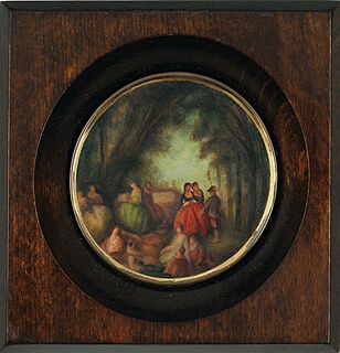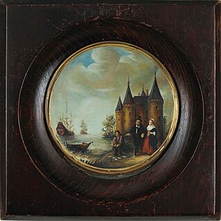 Olej/płyta malarska oprawiona w metalową ramkę wpasowaną w autorską ramę z drewna brzozowego. Sygn. na odwrocie: "wg Ph. Wouwermana mal. Halina RUPP, 1981". Stan zachowania bardzo dobry. wymiary: 83mm