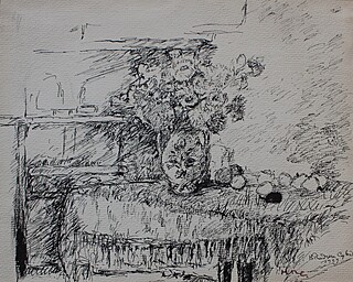 tusz, papier, 14 x 10 cm, w oprawie: 26 x 20 cm;