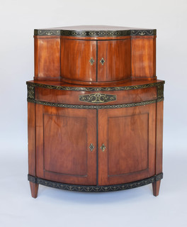 mahoń, dębina, buczyna, brzoza barwiona na orzech, żyłka mosiężna, mosiądz złocony, tafla lustrzana; 164,2 x 91 x 62 cm.