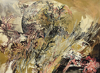 na odwrocie, na papierze zasłaniającym płótno opis autorski: BWA TARNÓW 80 x 100 / H. TCHÓRZEWSKA "Ziemia I".