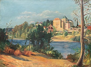 na odwrocie naklejka z opisem pracy: La Dordogne a Meyronne oraz numer na blejtramie flamastrem: 1421.