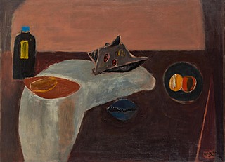 opisany na odwrocie: „Hayden nature morte feb |pain et theiere 1947 |Hayden” oraz „ [...] 06” papierowa, okrągła nalepka z numerem: „61” oraz nalepka z numerem...