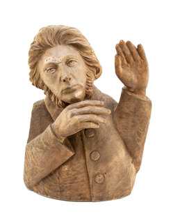 drewno; wys. 49,5 cm, wys. całk. z podstawą 53 cm.