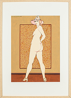 Tusz, akwarela, gwasz, ołówek, papier beżowy; 34 x 28 cm (w świetle p-p)