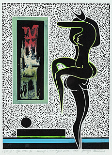 sygn., dat. i opis. ołówkiem u dołu: '"Teatr" (W. Siemionowi) Epr. dart. linoryt 1964 (A.P.) Henryk Płóciennik'
