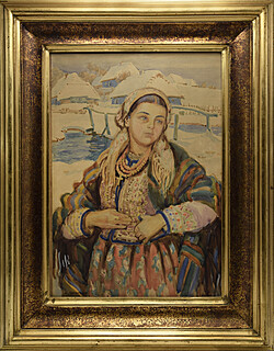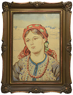 Na odwrocie nalepka TPSP w Krakowie, drukowana z tekstem atramentem: (stempel) 1906 / Uziembło Henryk / Kraków / "Portret kobiecy", oraz stempel: Skład...