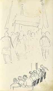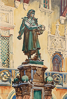 akwarela na podrysowaniu ołówkiem, karton; 34 x 28 cm;