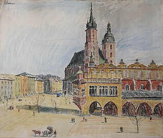 Praca opisana autorsko i dat. z tyłu: „Ignacy Pinkas. Fragment Kościoła N.M.P. Kraków 1927”.