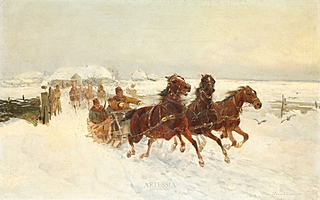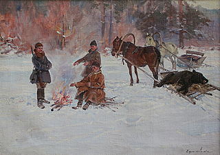 Olej, tektura; 49,5 x 70 cm