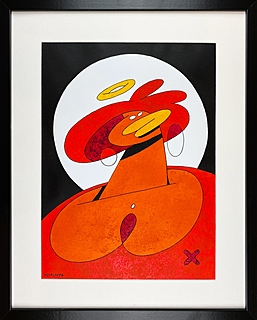 akryl, papier, 50 x 40 cm, w oprawie: 52 x 42 cm,
