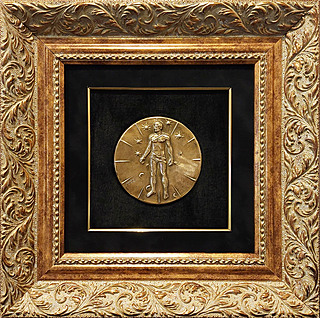 medal oprawiony (wymiary z oprawą 31 cm x 31 cm)