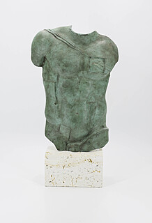 brąz patynowany, podstawa z trawertyny; wys. z podstawą: 47 cm;