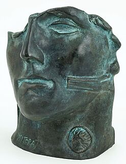 brąz srebrzony, wys. twarzy 6 cm, szer. twarzy 6,5 cm;