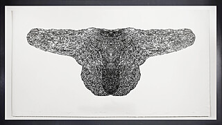 linoryt, papier (Fabriano Artistco); 73,5 x 157 cm (wymiar arkusza), 93 x 198 cm (wymiar z ramą)