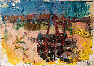akryl, tłusty pastel/płótno, 34 x 33 cm
