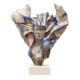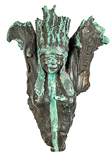 brąz, podstawa metalowa, patynowana, wym.: 66 x 51 x 39 cm, podstawa: 85,5 x 23,5 x 23,5 cm,
