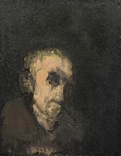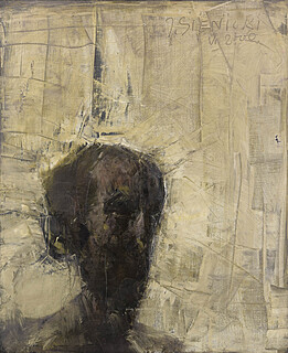na odwrocie odręczna adnotacja, potwierdzenie autorstwa ręką żony artysty Wandy Sienickiej; „Głowa” - obraz Jacka Sienickiego / lata 90. / W. Sienicka