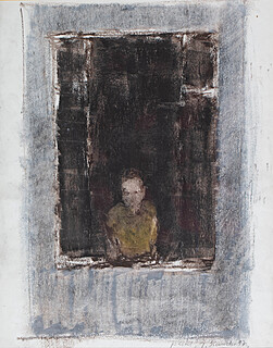 sygn., dat. i opisany na odwrocie: Jacek Sienicki / postać stojąca / ol.pł. / 1987.I"